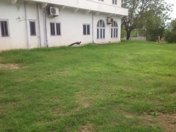Our big news this rainy season is that Savista has received its first peacock resident guests ever. Friends of Savista who follow our blog will recall that during last year’s rains it was an amphibian guest – a turtle lovingly named Torty – who chose to make his home with us. Torty stayed on for a few months; after exploring all the ground level rooms and courtyard of the haveli, he chose to spend much of his time in the library, for which we promptly nicknamed him Goethe ! He then left of his own accord one day, without our knowledge, peacefully and without fuss or rancour. We hope that this year’s long-feather-tailed ‘first guests’ will stay a while longer than that.